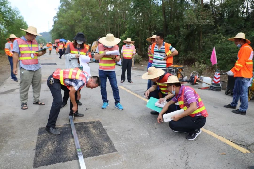 实操技能竞赛在鹤山市原省道S273线江门监狱路段展开,内容包括路面病害维修处治和路况调查。其中,路面病害维修处治分两轮进行,选手们进行了坑槽修补、裂缝处治等病害维修工作。路面病害维修完成后,6支队伍马上进行路况调查。比赛紧张有序地进行,选手们高度集中,互相配合,规范操作,充分展现了各自的专业水平和敬业精神。裁判组严格按照评分标准对选手们的操作规范化水平和维修工艺进行了评分。
