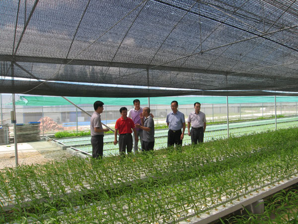 一是到生产基地调研。当日上午江门市供销社机关支部全体党员20多人,首先到开平市好新鲜农业开发有限公司大棚蔬菜生产基地进行实地调研,了解蔬菜的种植和生长情况,以及该基地的建设情况、发展思路及产出效益等。随后,大家还参观了我社的对口扶贫村——开平市金鸡镇大同村灌溉抽水站的相关设施。