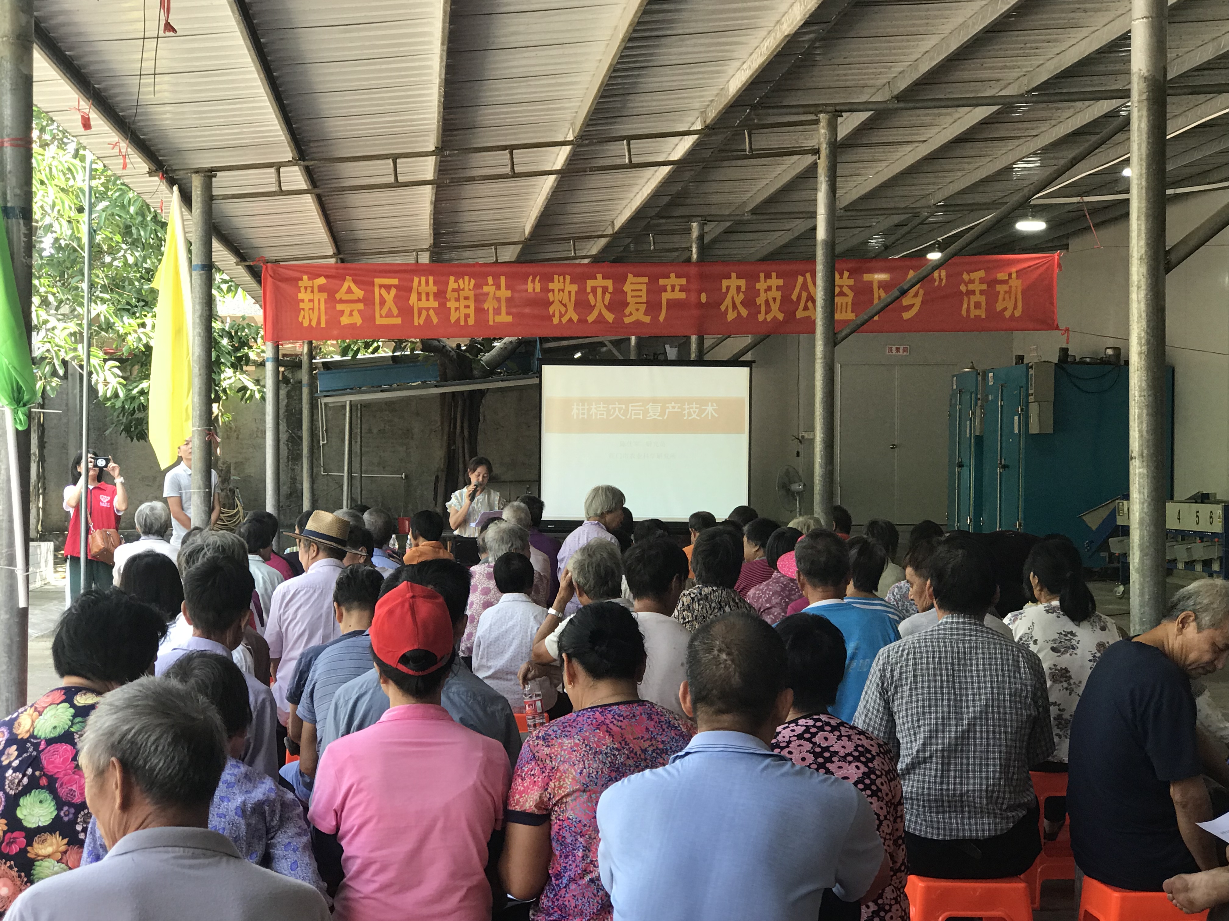 活动当天,区社特邀请江门市农科所的研究员现场为广大农民群众讲授救治损毁农作物、科学施肥用药、预防次生灾害等灾后复产相关知识。随后,由区供销社、会城中心社、睦洲供销社、新供销特色农产品贸易有限公司、新会区新禾农技服务有限公司等组成的“三农”志愿服务人员采用一对一农技信息咨询、发放宣传资料等方式,在政策指导、信息引导、管理技术、农技服务等方面给予农民详细耐心的指导,并为当地农户和农民专业合作社的社员等120多人免费派送了化肥6吨,发放农技学习资料200多份。此次活动得到新马单村的村民的一致好评,村民们纷纷为供销社的“三农”志愿服务队点赞。
