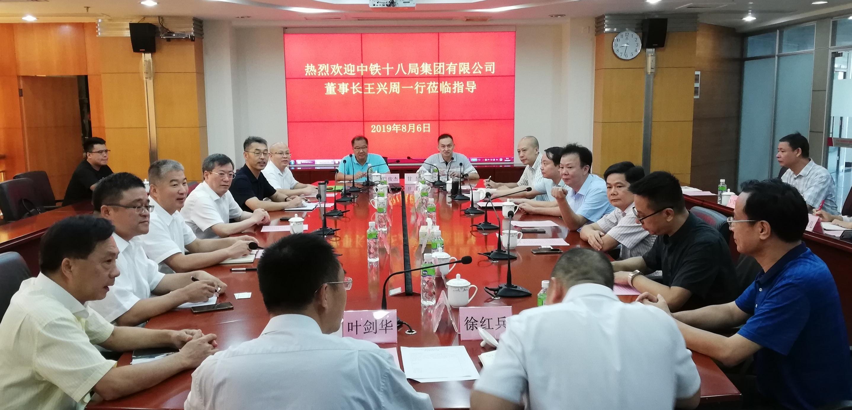 8月6日上午,中铁十八局集团公司党委书、董事长王兴周一行到访市国资委。市国资委党委书记、主任卢国壮与中铁十八局集团公司的领导就推进路桥城市建设、交通设施建设以及资质平移等领域合作事宜进行了深入、坦诚的交流。在座谈中,卢国壮对中铁十八局集团在江门合作项目建设中所作的工作表示赞赏。王兴周感谢江门市国资委一直以来对中铁十八局的大力支持,并介绍了企业发展情况和参建重大项目的情况。