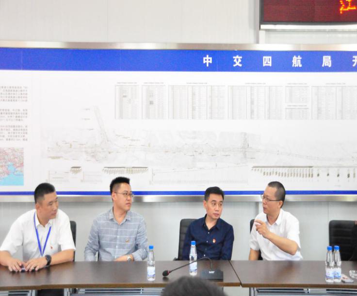 随后,全体党员到开春高速TJ04施工段项目部,开展党建联创主题党日活动,参观党建“三方联创”文化长廊、党建活动室、了解中交四航局发展历程及开春高速TJ04施工段建设管理情况,并围绕开春高速建设主题交流党建联创工作。