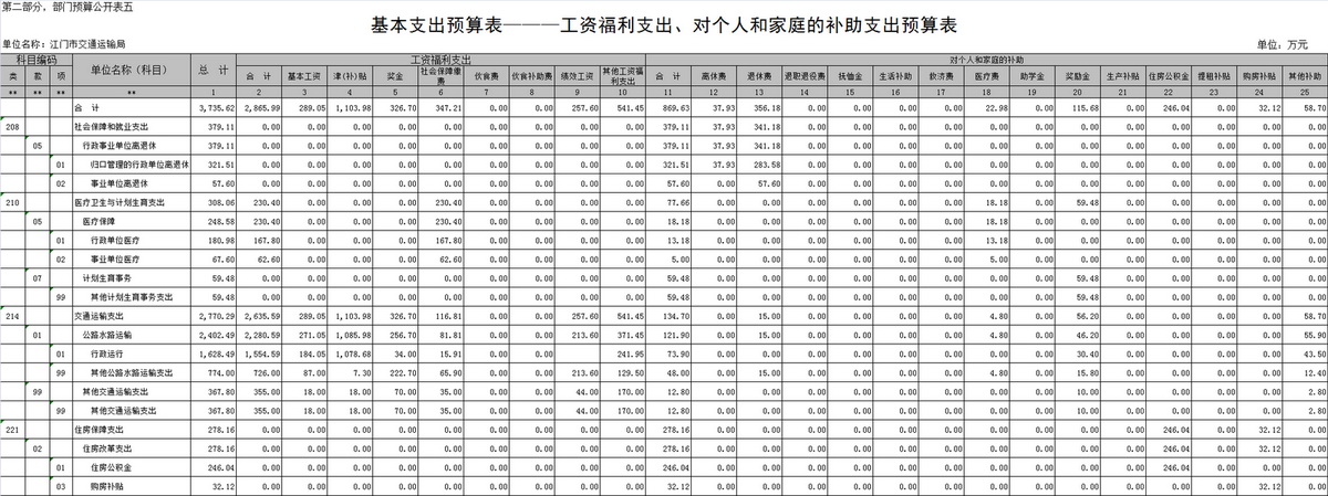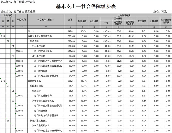 项目支出预算5511.19万元,主要支出项目有公路水路运输支出1110.63万元、公共交通运营补助支出3681.16万元、其他交通运输支出89.40万元、港口建设费330.00万元、城市基础设施配套费300.00万元。与上年比增加主要是增加公交优先发展专项资金3048.00万元,新能源汽车应用推广专项资金1183.16万元,江门市市区城市公共交通专项规划修编300万元等项目支出。