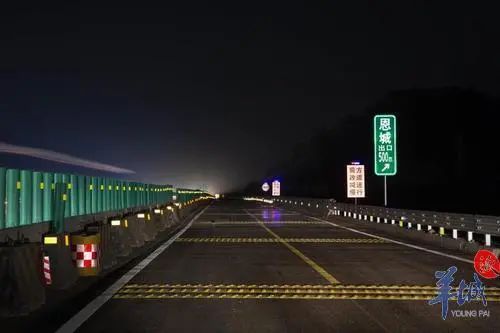同时在距离互通出口、服务区入口2公里、1公里、500米及出(入)口位置提前布设大幅面、大字体的指路标志,进行预告提示。作为全省高速公路标线标准提升的试验段,项目还根据实际情况提高路面反光标线玻璃珠的用量,保障标线反光效果更佳。