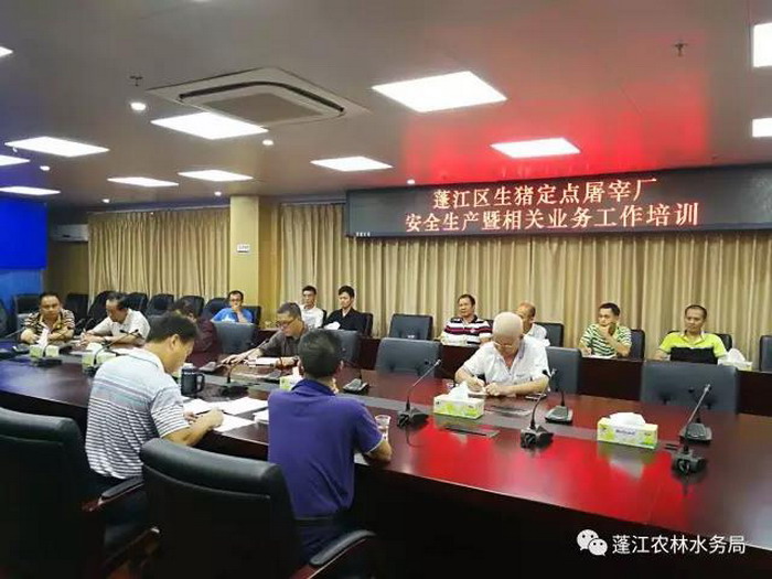 为全面落实生猪屠宰企业安全生产主体责任,进一步强化责任意识,普及安全法制,确保蓬江区生猪定点屠宰企业安全生产,保障出厂生猪产品质量安全,区农林和水务局开展了生猪屠宰安全生产月活动,组织开展屠宰安全生产培训和相关宣传活动,收到了良好的效果。