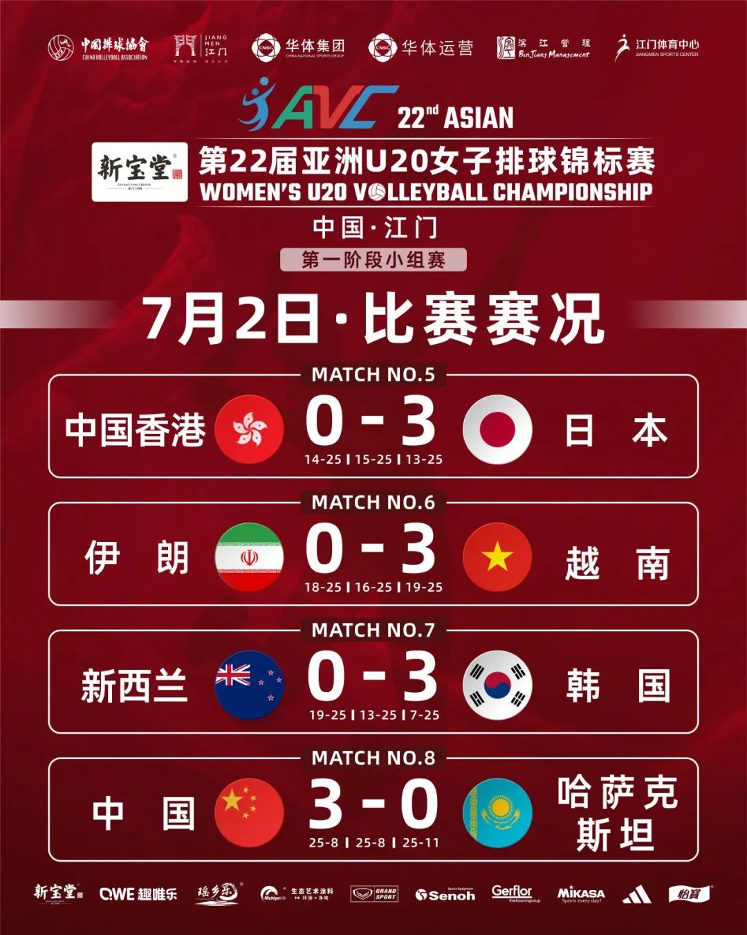 当日还举行了另外3场小组赛,最终日本队以3∶0战胜中国香港队,越南队以3∶0战胜伊朗队,韩国队以3:0战胜新西兰队。