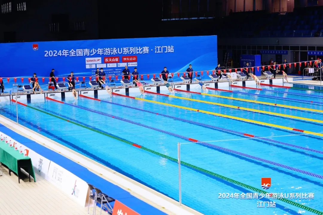 2024年全国青少年游泳U系列比赛·江门站,由国家体育总局游泳运动管理中心、中国游泳协会主办,广东省游泳协会、江门市文化广电旅游体育局承办,江门市蓬江区文化广电旅游体育局、广州星汇体育科技发展有限公司协办,江门滨江华体体育会展中心有限公司运营,是江门体育中心首次承办国家级的游泳赛事。