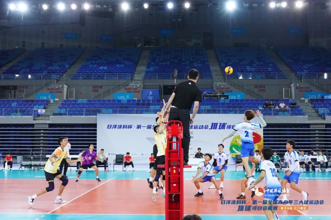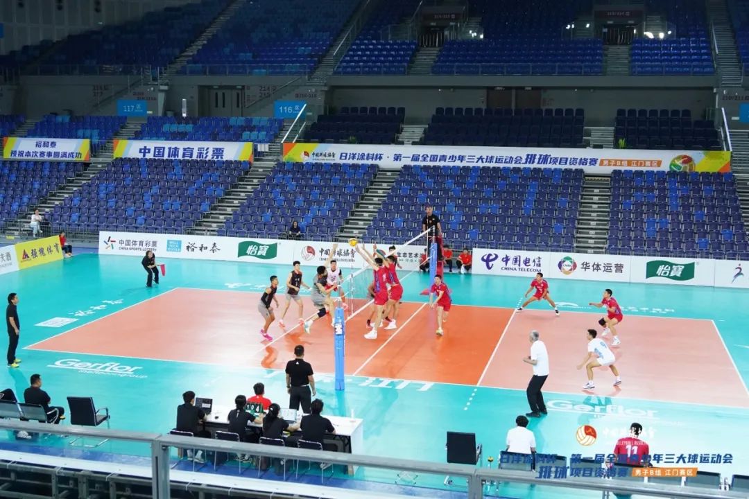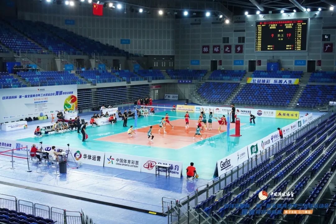 9月23日,日洋涂料杯·第一届全国青少年三大球运动会排球项目资格赛男子B组(江门赛区)结束13个比赛日(78场次)的激烈争夺,在江门体育中心体育馆顺利落下帷幕。该项赛事由国家体育总局排球运动管理中心主办,江门市文化广电旅游体育局承办,江门市蓬江区文化广电旅游体育局、江门市排球协会协办,江门滨江华体体育会展中心有限公司运营。