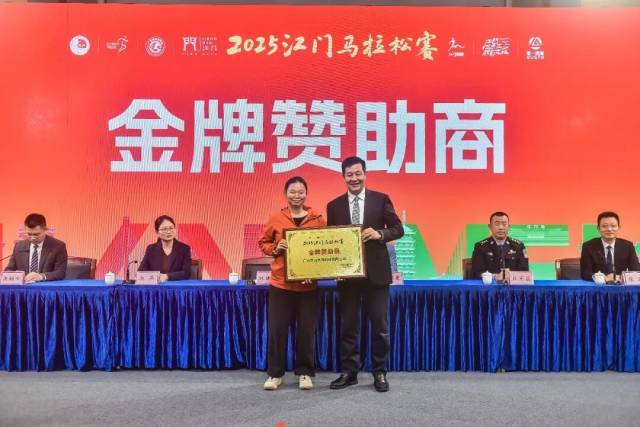 2025江门马拉松赛组委会16日召开新闻发布会,介绍江门马拉松赛的筹备情况,公布赛事线路、奖牌、参赛服,并举行赛事赞助商授牌仪式。副市长林健生出席会议。