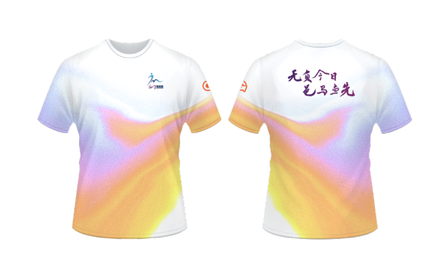 服装设计采用炫彩粉渐变色,既跃动着马拉松的活力与激情,也呼应着江门清新、开放、多元的城市气质。正面饰以赛事专属LOGO,背面“无负今日 邑马当先”的主题口号跃然其上,这不仅是一句标语,更是奔跑者的共同誓言。口号的力量与脚步的节奏同频共振,每一位跑友身披这份色彩与宣言,向世界展示一个青春昂扬、奋进不息的江门。