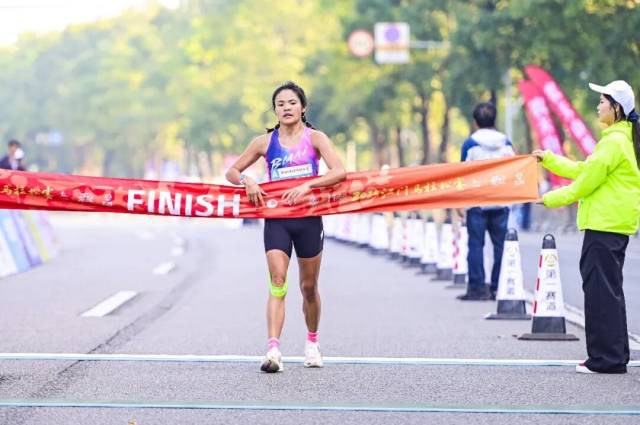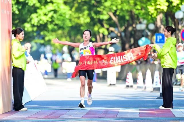 半程马拉松女子组中,韦春华以1小时19分58秒的成绩成功卫冕,实现江门马拉松半马女子组三连冠。曾雪梅、薛芳芳分别以1小时20分40秒、1小时21分02秒的成绩位列亚军、季军。