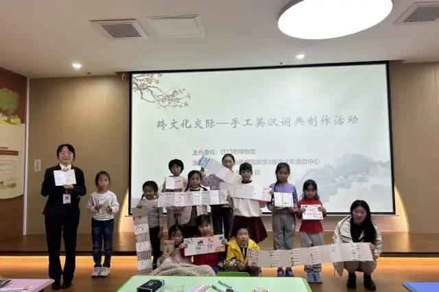 当天下午,跨文化交际—手工英汉词典制作活动在江门市侨博馆新馆3楼青少年活动中心举行。
