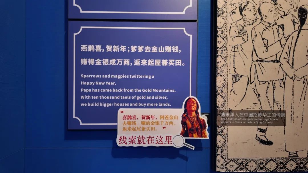 侨博馆 《根在侨乡》展览中展示的侨乡民歌,主要反映了侨眷期盼出洋谋生家人,能早日凯旋回乡。除此之外,《台山歌谣》还收录了其他与“出洋谋生”“金山客”有关的民歌。
