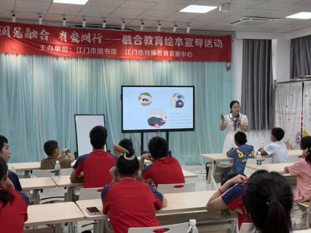 2025年5月24日上午,由江门市图书馆、江门市特殊教育资源中心、江门市特殊教育学校、江门市江海区特殊教育学校联合主办的“阅见融合,有爱同行”——融合教育绘本宣导活动,在江门市图书馆门楼四楼少儿多功能活动室顺利开展。活动吸引了江门市特殊教育资源中心教师代表、江海区特殊教育学校学生代表(6人)、陈白沙小学亲子代表(10组)及志愿者义工队共同参与,旨在通过绘本共读与互动体验,搭建理解与包容的桥梁,推动融合教育理念深入人心。