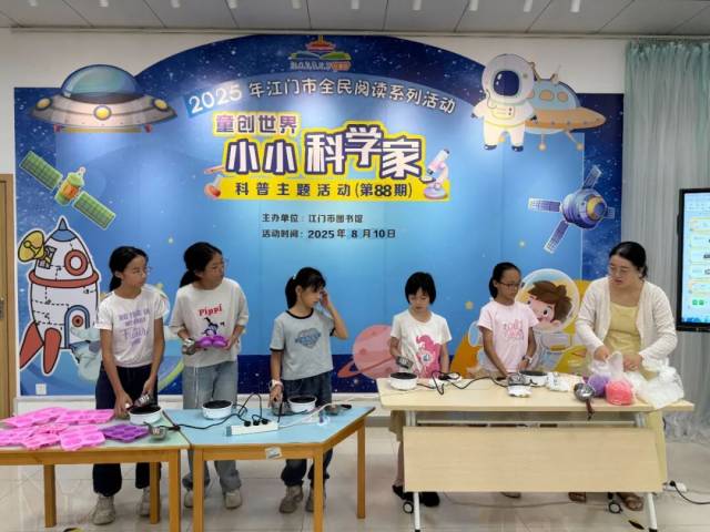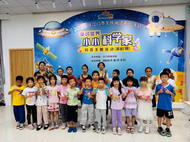 江门市图书馆“童创世界——小小科学家”第87-91期活动于8月趣味开展,围绕物理现象、化学应用与科技原理,带领孩子们在亲手操作、实验探索中揭开科学的神秘面纱,度过一段充满好奇与收获的科学时光。