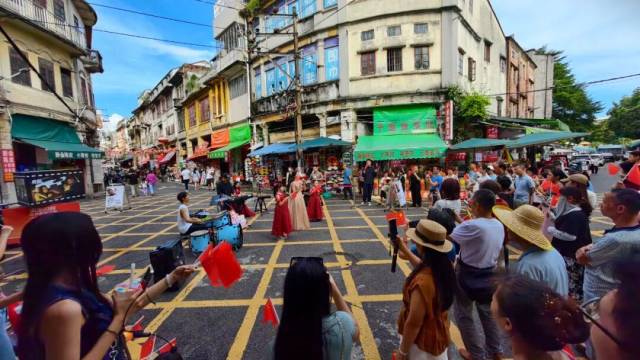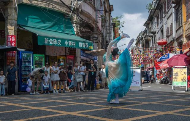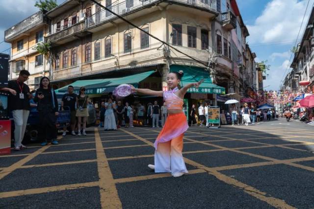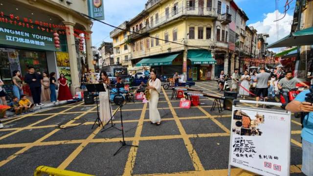 国庆期间,由江门市文化广电旅游体育局指导、江门市文化馆主办的“江门三点三精彩之旅·墟街有戏”系列活动在长堤历史文化街区成功举办。3场不同主题的文化展演以独特方式展现了侨乡文化的魅力,在庆祝中华人民共和国成立76周年的喜庆时刻,用艺术的语汇表达了对祖国的深情祝福,成为市民和游客假期文化生活的精彩缩影。