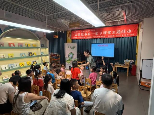 10月18日下午,阳光透过窗棂洒在活动现场,一张张充满期待的小脸蛋与身旁温柔陪伴的家长们,共同开启了第43期 “云朵故事会 —— 亲子伴读” 的美好时光。