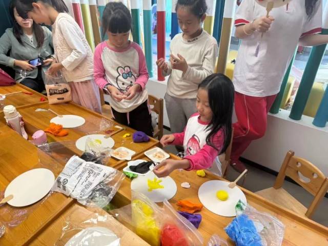 活动的压轴环节是手工制作 ——《网络安全 “守护盾”》。工作人员为每个家庭准备了空白团扇和色彩丰富的超轻黏土,邀请亲子家庭共同创作,用手中的黏土在团扇上打造属于自己的 “网络安全守护盾”。