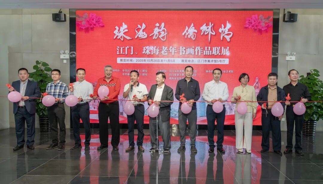 翰墨飘香歌盛世,丹青亮彩写华章。10月28日,由中共江门市委老干部局与中共珠海市委老干部局联合指导,江门五邑炎黄文化研究会、江门市老干部书画研究会、珠海市老年书画研究会主办、江门市美术馆协办的“珠海韵 侨乡情”江门、珠海老年书画作品联展在江门市美术馆隆重启幕。