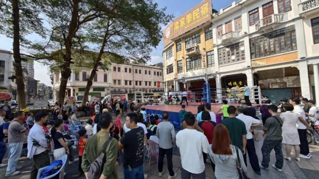 11月16日上午,江门长堤历史文化街区青年广场上锣鼓喧天、旌旗招展,由江门市文化广电旅游体育局、五邑大学体育部指导,江门市文化馆、江门市武术协会联合主办的“墟街有戏 全运同行 ——2025年第二届中国侨都武林争霸”在此精彩上演。本次活动涵盖武术、搏击、龙狮等多个竞赛项目,总参与人数超过270人,齐聚侨乡武林精英,以武会友,以赛传情,在百年骑楼的见证下,奏响了一曲传统与现代交织、体育与文化共鸣的雄浑乐章。