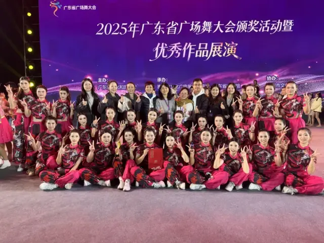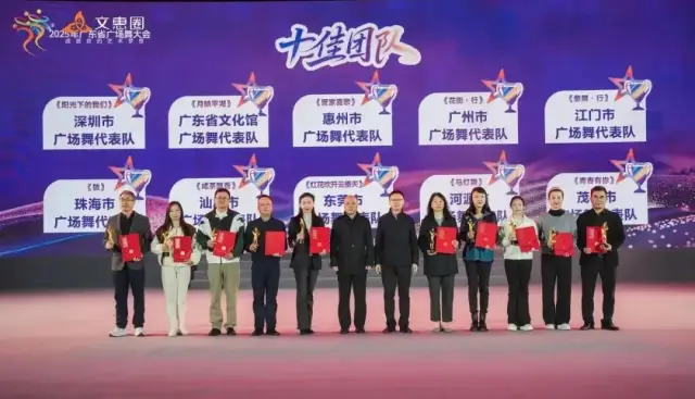 此次大会分为集中展演和优秀作品展演两场活动。在集中展演环节,来自全省23支代表队同台竞技,各展风华,堪称一场岭南群众文艺的“巅峰对决”。在激烈的角逐中,江门市广场舞代表队凭借出色表现荣获“十佳团队”称号,以舞为媒,尽显侨乡文化独特魅力。