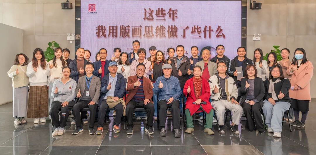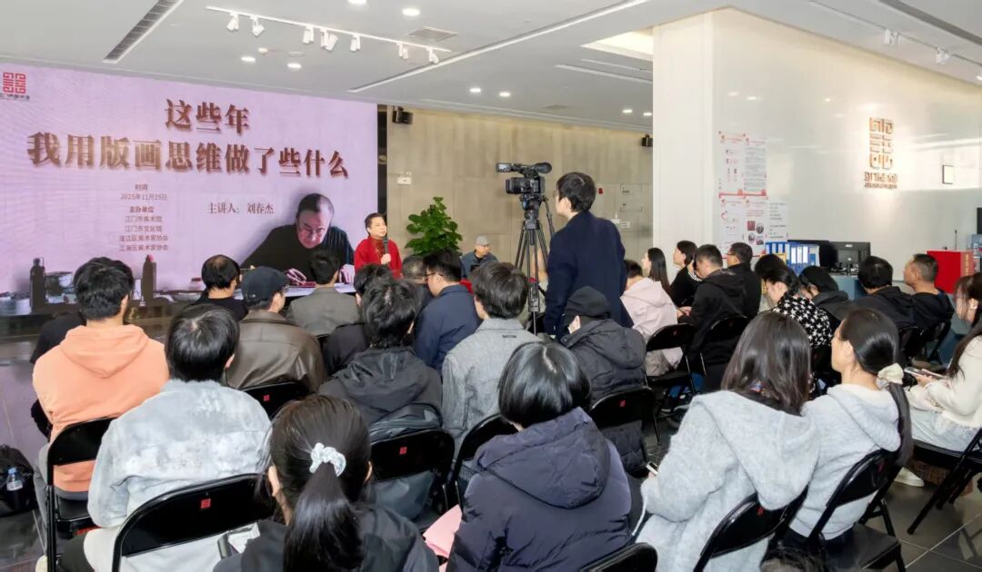 展览开展当天,美术馆邀请了南京书画院院长、金陵美术馆馆长、中国美术家协会版画艺术委员会委员、中央美术学院国际版画研究院副院长、中央美术学院版画系客座教授、南京艺术学院客座教授、南京师范大学美术学院硕导、西安美术学院硕导、二级教授、第十三届全国美展评委、国家艺术基金专家评委刘春杰,以 “这些年,我用版画思维做了什么” 为题举办分享会,分享其在版画创作与艺术实践中的深层思考与跨界探索。