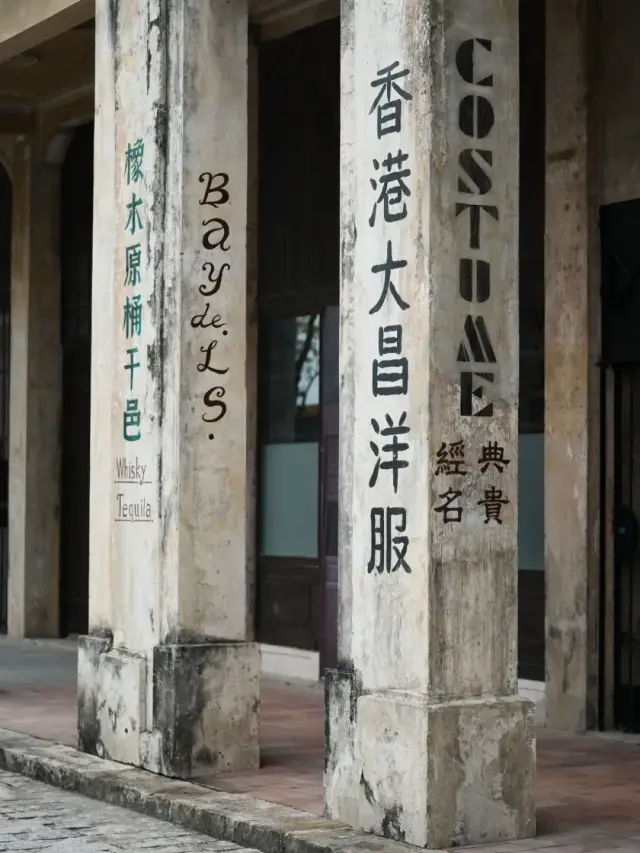 骑楼的柱廊也十分具有观赏价值。由于骑楼是一种近代商住建筑,楼上多为用来居住,楼下前面为店铺。为了更好地宣传自己的商品,人们会在柱廊上写上自己店铺的广告语,以增加店铺商品的曝光度。如今看来,上面的文字语言依然耐人寻味。