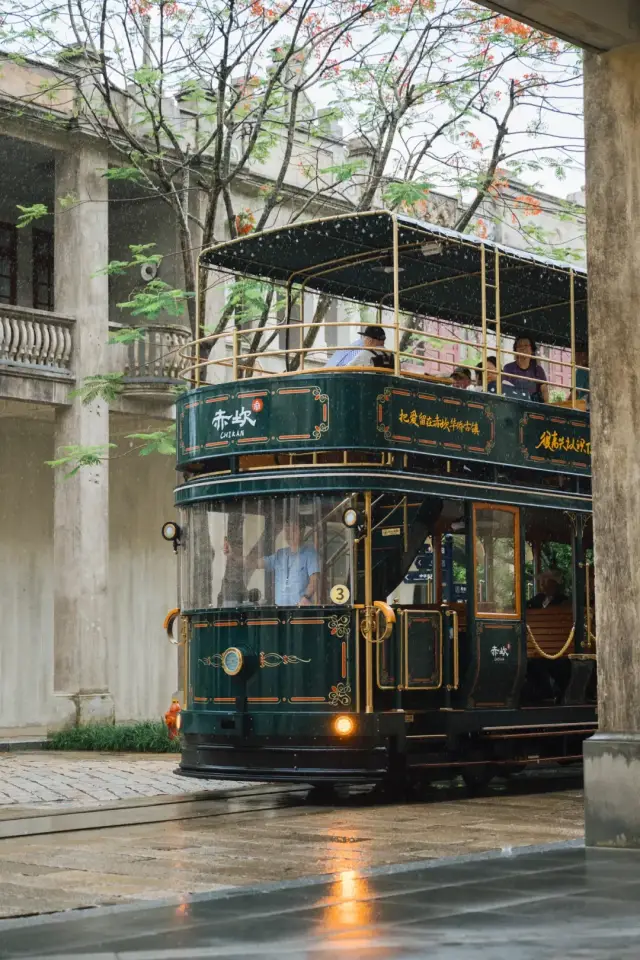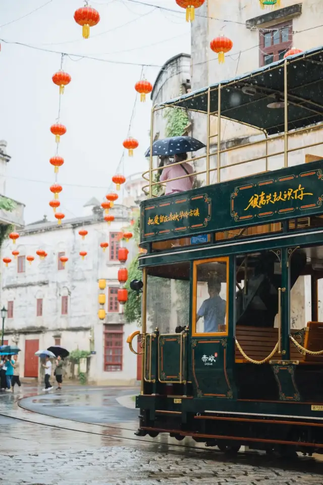 搭乘一趟铛铛车,坐在窗前,眺望窗外的烟雨朦胧,将古镇的美景净收眼底,还能近距离地与百年骑楼来一场穿越时空的邂逅。