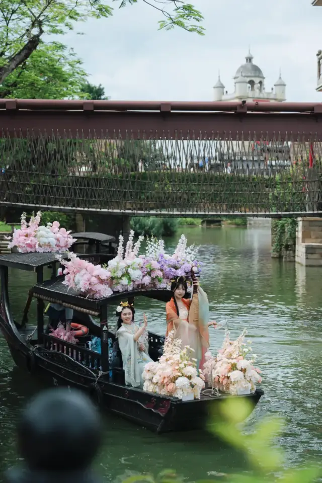 一边欣赏船桨泛起的涟漪,一边遥望岸上的骑楼林立,络绎不绝的美景让人眼花缭乱,目不暇接。
