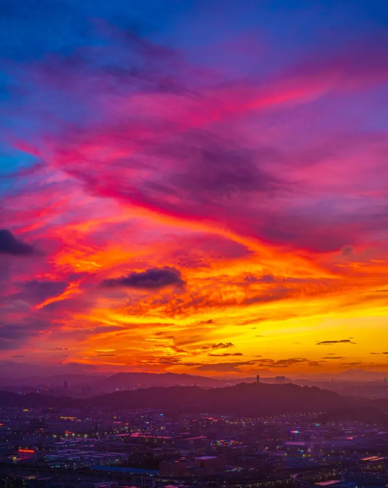 天空中的云彩五彩斑斓,如同织锦。