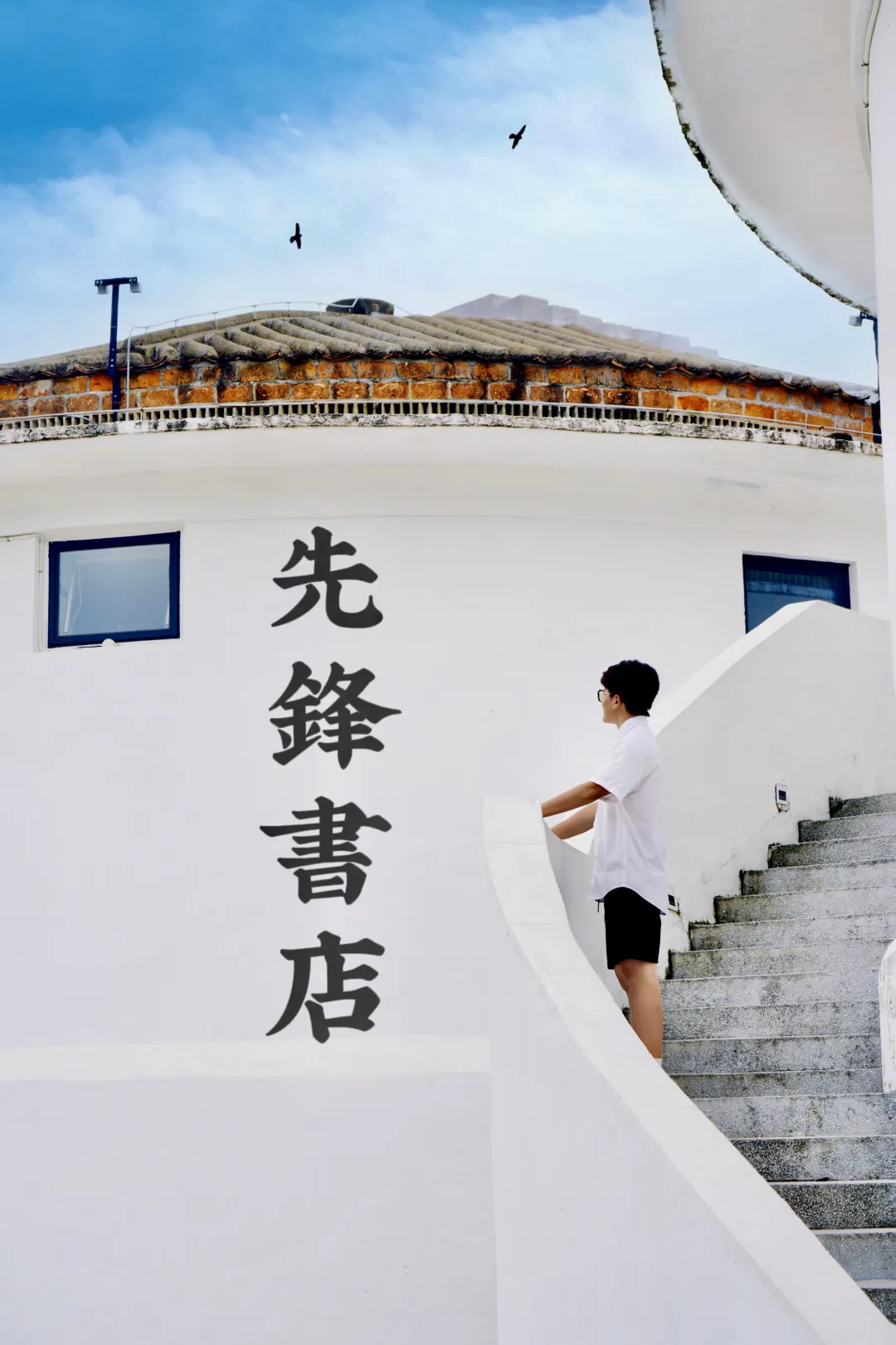 看老街与蓝天白云一同构成