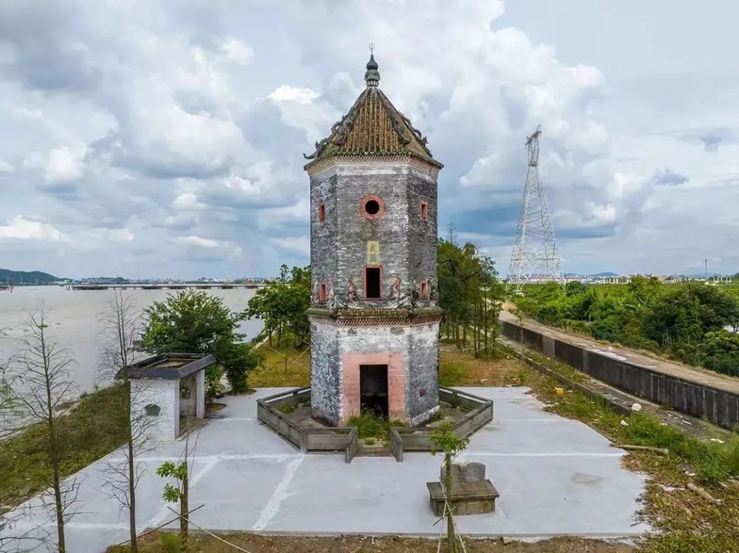 七堡文阁,位于广东省江门市新会区会城街道潭冲村潭江边。建于明代,近年华侨捐资维修。