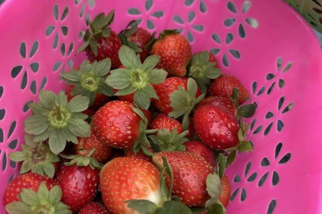 里面种植着诱人的奶油草莓