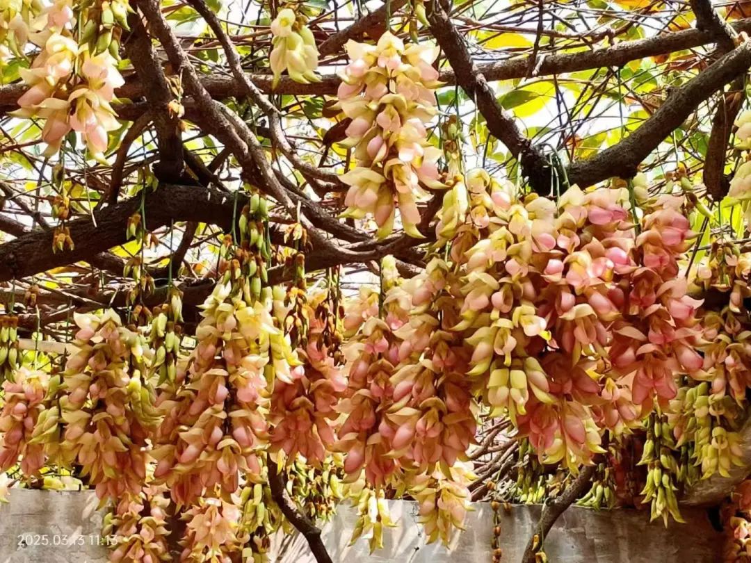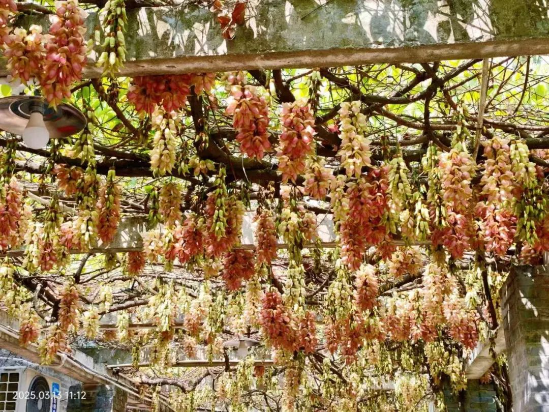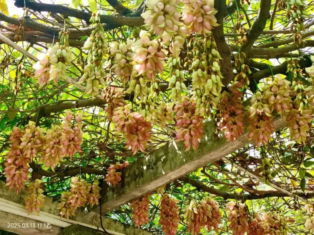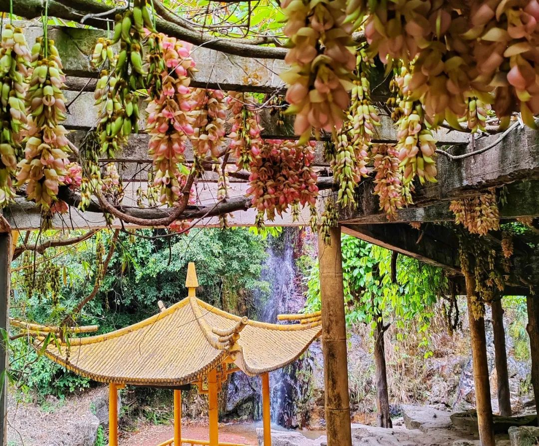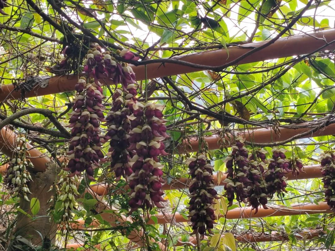 禾雀花垂挂在花廊上,花形玲珑可爱