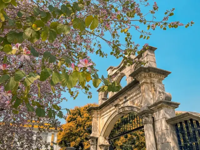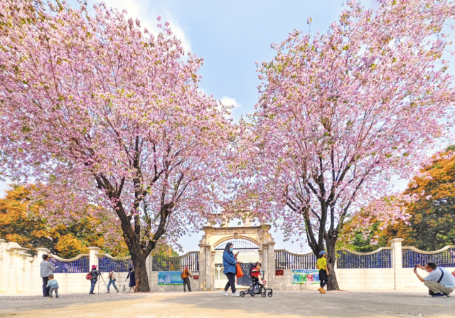 新会一中和新会书院附近,宫粉紫荆满树繁花。郭永乐 摄