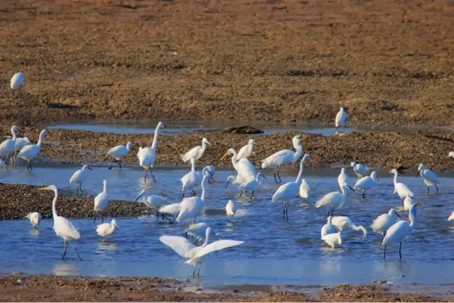 喜欢观鸟的朋友可以来银湖湾湿地公园走走。作为新会原来的围垦区,银湖湾湿地公园位于银洲湖出海口西侧,总面积10万亩。这片绿洲,保存了完好的湿地原生态环境,是珠三角难得的一片黄金宝地。
