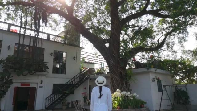 一棵百年古榕亭亭如盖,撑起一片绿荫。