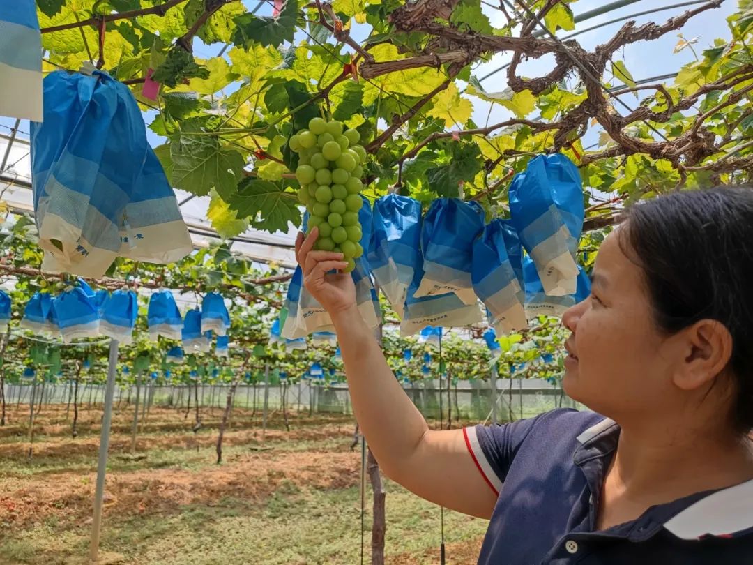 如今,生态园内的阳光玫瑰葡萄、
