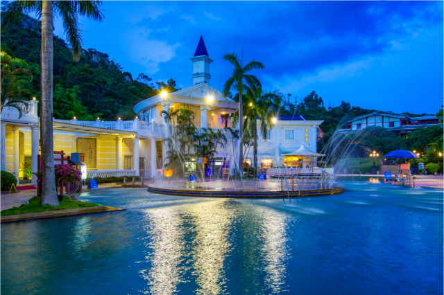 度假区内设有唐式、欧式、日式三大温泉区,提供不同的舒适体验;此外还设有水上乐园和无边际泳池等丰富的游乐设施,如大象滑梯、水上冲关池和梦幻泡沫池等,非常适合夏季玩乐。古兜山下、滨临黄茅海畔,温泉在山林间氤氲而起,在自然环抱中让人身心彻底放松。泡汤养生、远眺海天一色,是夏日放松身心的绝佳选择。