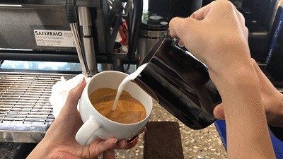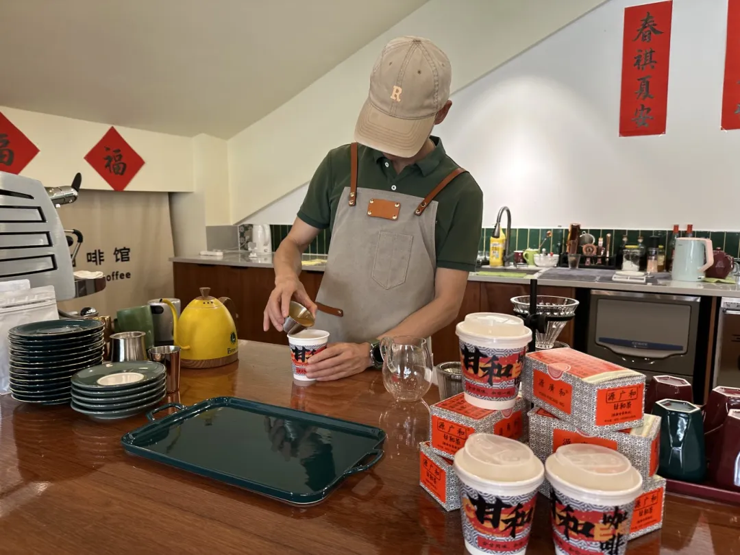 △店主谢芳勇正在制作甘和咖啡