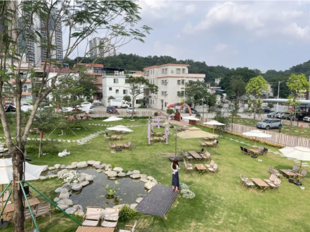 在江门台山台城历史文化街区,游客穿梭其中,看骑楼、逛非遗馆、品尝咖啡、打卡西门墟,度过美好的休闲时光。位于南门路与人工湖交界、空置多年的南湖大酒店,近年来也被盘活起来,引入连锁酒店、文艺餐厅、特色咖啡馆、东南亚料理等酒店餐饮业态。而路口榕树下则是开了一家怀旧风格咖啡馆,融合港乐元素,保留上世纪民居格局,成为网红打卡点。