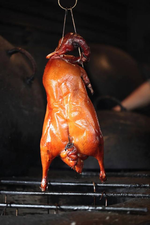 出炉的烧鹅色泽鲜艳,