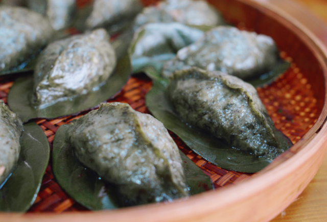 上好的艾糍该是用早春艾草芽头挤出来的汁