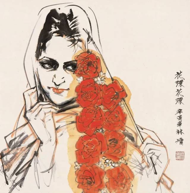 林墉 花环花环 67×67cm 纸本设色 1981