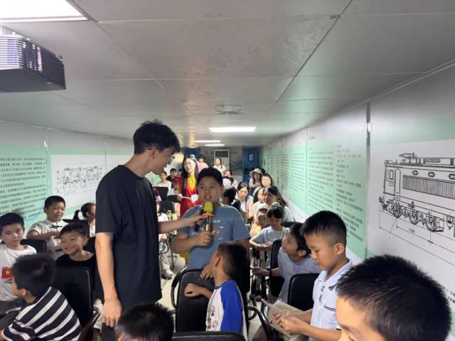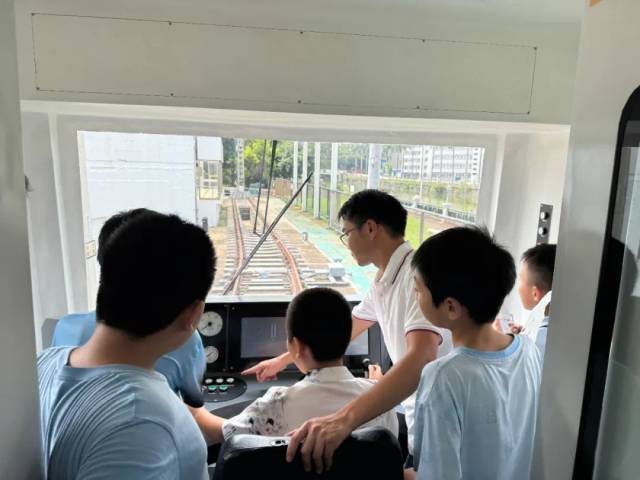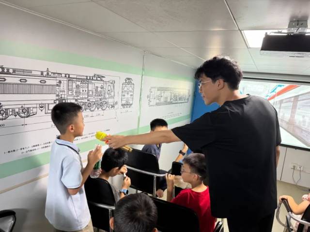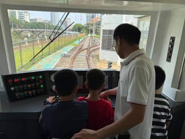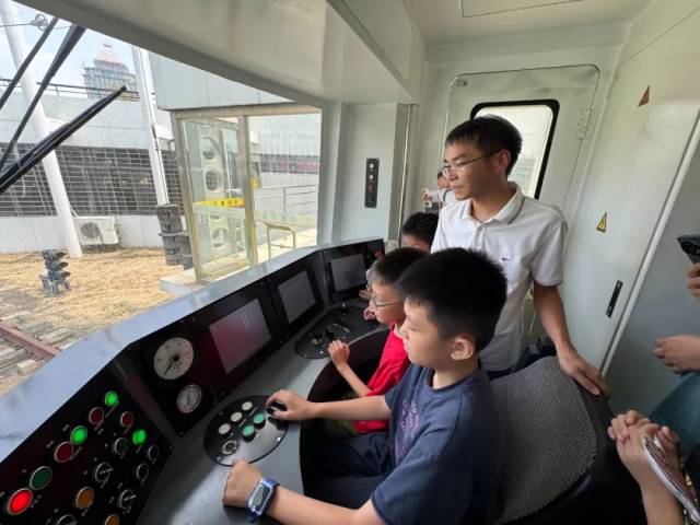最让孩子们兴奋的环节当属实践体验。在图书馆工作人员的组织和五邑大学轨道交通学院专业老师的指导下,孩子们化身“列车长”,体验驾驶列车的乐趣,直观感受轨道交通运行的基本原理。
