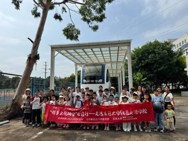 7月5日,“书香江门”阅读推广公益行系列活动之“侨乡文化研学公益行”2025年首站活动在五邑大学轨道交通学院顺利开展。本次活动由江门市图书馆、五邑大学轨道交通学院及轨道交通科普基地联合主办,吸引了20组亲子家庭共约40人参与其中,在沉浸式体验中探索轨道交通的奥秘,感受学术与知识的魅力。