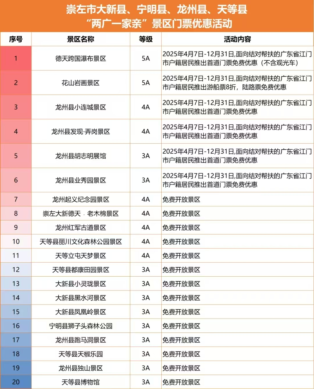 江门街坊,这个暑假,崇左喊你免费游!