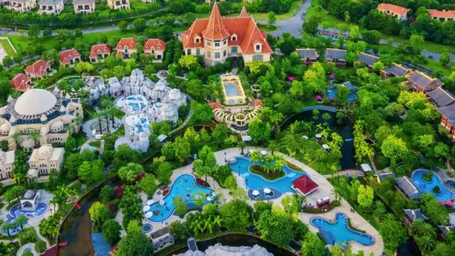 景区的温泉小镇荟萃了五国特色温泉:泰国、日本、芬兰、意大利、土耳其。这个秋日,来一场特色的温泉之约吧~