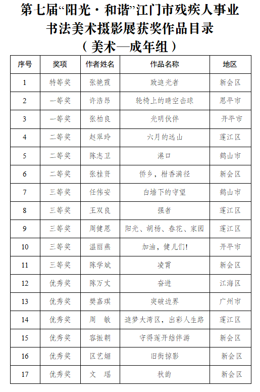 此次展览的成功举办不仅展现了江门市残疾人艺术创作的最新成果,也体现了社会各界对残疾人事业的大力支持,看到了残疾人的潜能和创造力,为促进社会包容和谐发展提供了重要文化载体。