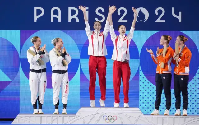 巴黎奥运会花样游泳双人自由自选王柳懿、王芊懿夺得冠军。新华社记者 薛宇舸 摄