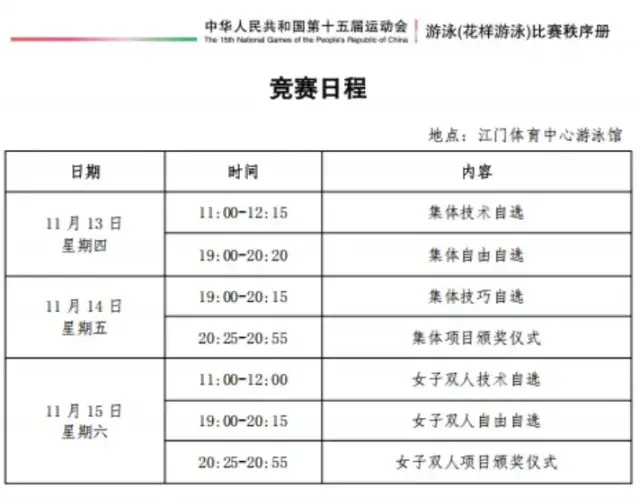 十五运游泳(花样游泳)赛事